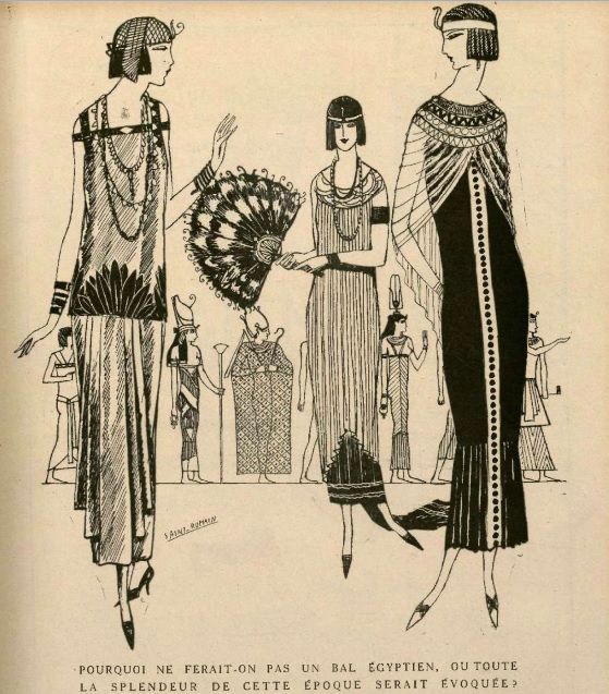 L’émigration Russe vers la capitale apporte les motifs et broderies slaves, la découverte de la tombe de Toutankhamon popularise l’iconographie égyptienne, ses scarabées, ses oiseaux et cascades de perles dorées.