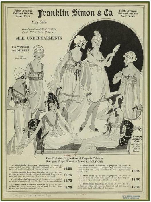 Jusqu’ici, le vêtement de nuit, était une robe longue de coton tombant sur la cheville, réalisée de la même manière depuis l’ère victorienne; les femmes se réjouissent de cette évolution vers des modèles plus légers, gagnant en séduction, leur permettant de se réapproprier leur corps et leur féminité.