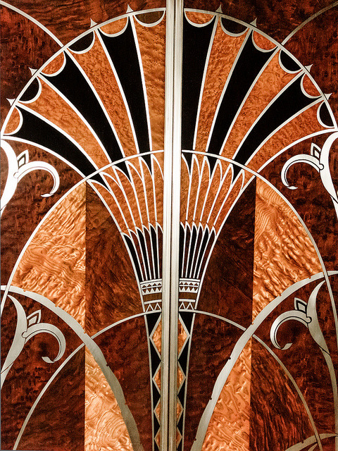 Cet attrait influence en premier lieu une grande partie du style Art Déco. Les fleurs et volutes traditionnelles de l’Art Nouveau s’éclipsent au profit de motifs plus géométriques.