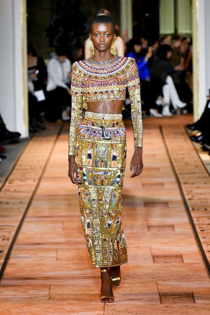 Les découvertes, les étoffes, dessins et couleurs, déterrés de ce Monde Antique, ont eu un impact considérable sur la mode et l’art en général. Et l’imaginaire de cette Égypte rêvée, continue de vivre à travers un fantasme irréel fait de broderies et de paillettes, dans les collections « croisières » chez Chanel ou encore chez Dior, Balmain, Chloé…